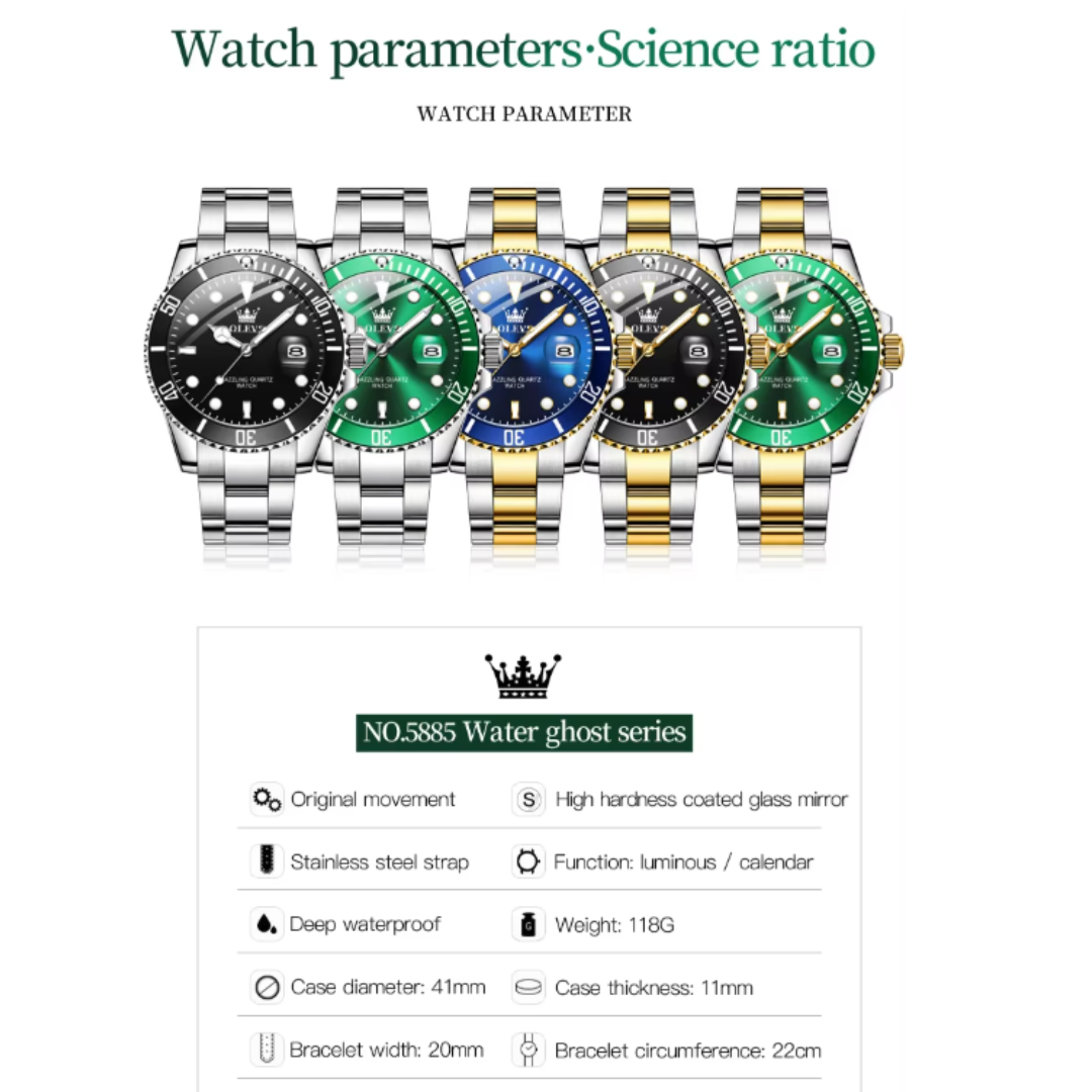 Equipped with high-grade luminous paint on its hands and hour markers, this watch glows radiantly in low-light conditions. Charge it under daylight or indoor lighting, and its natural light-absorbing pigment releases a clear, long-lasting green glow at night. Whether you’re exploring dark trails or checking the time at dusk, the Water Ghost keeps you on schedule around the clock.