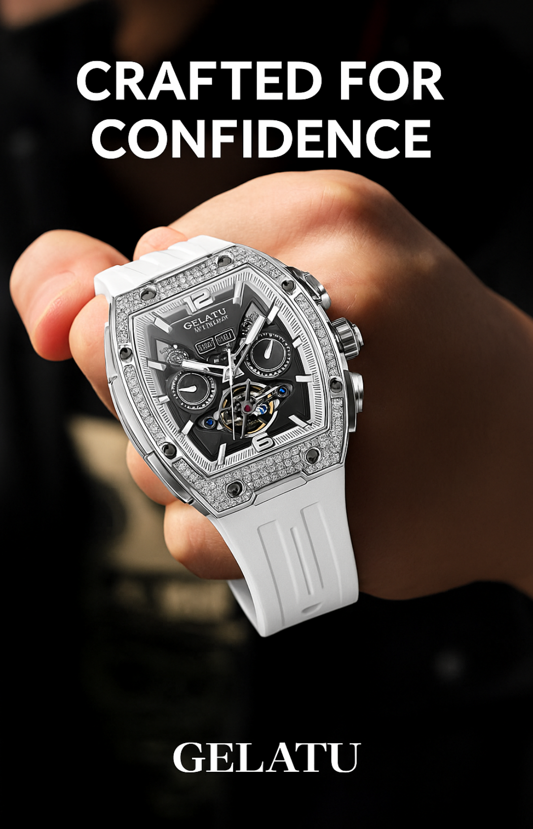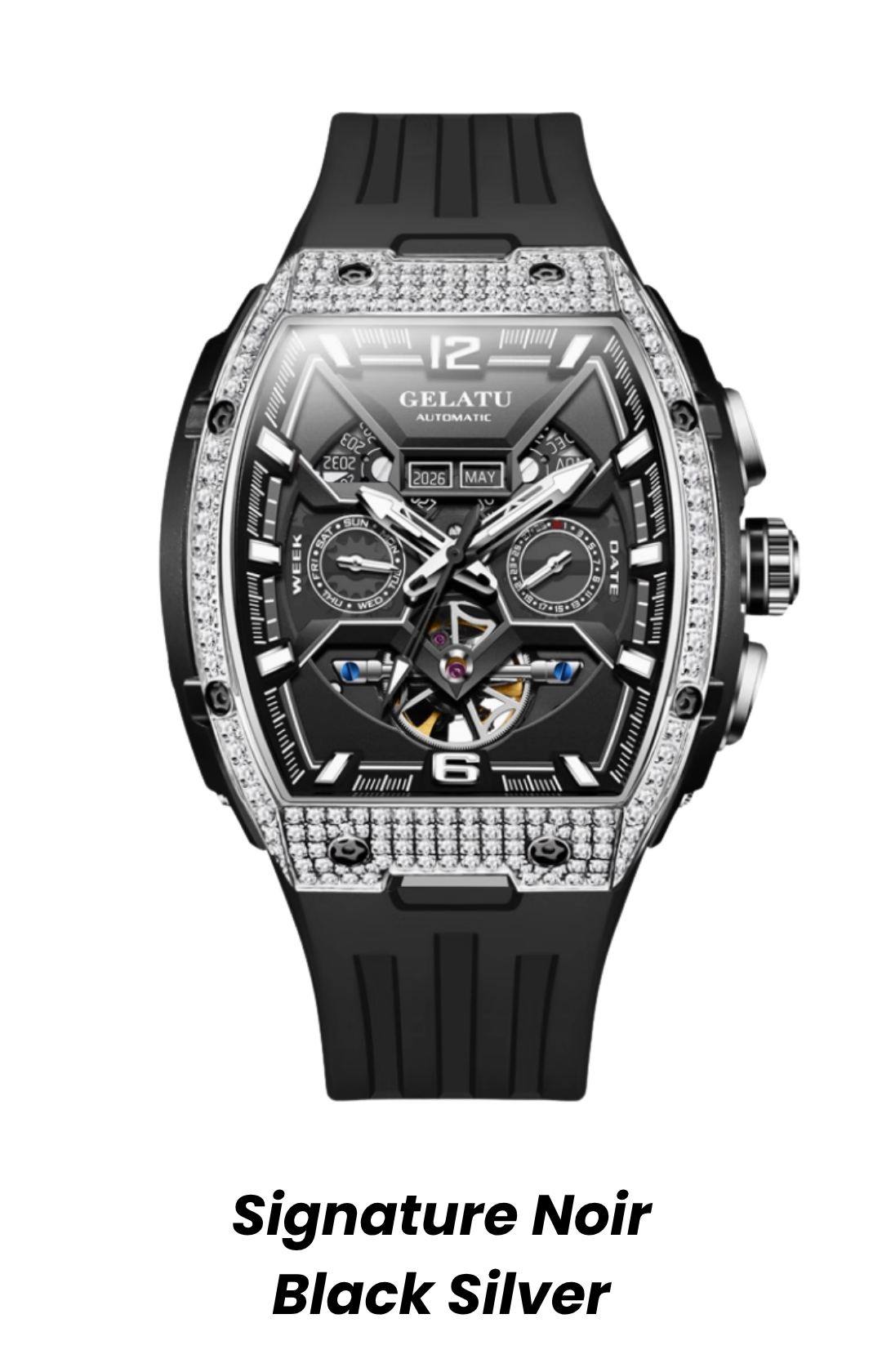 Built with premium materials and an eye-catching large face, this watch is more than just an accessory—it’s a statement. Whether worn in a boardroom, on a night out, or at a formal event, the Gelatu 2025 Series projects strength, elegance, and refined confidence.