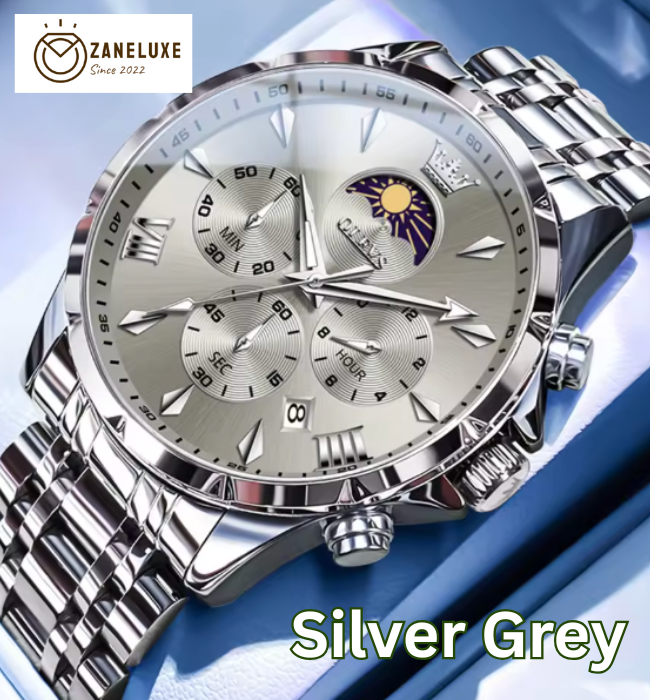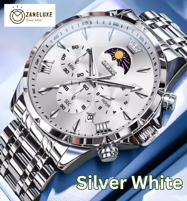 Moonphase Chrono Pro 7-Series - Moonphase Chronograph Quartz Watch for Men – Stainless Steel, Multifunction & Waterproof
