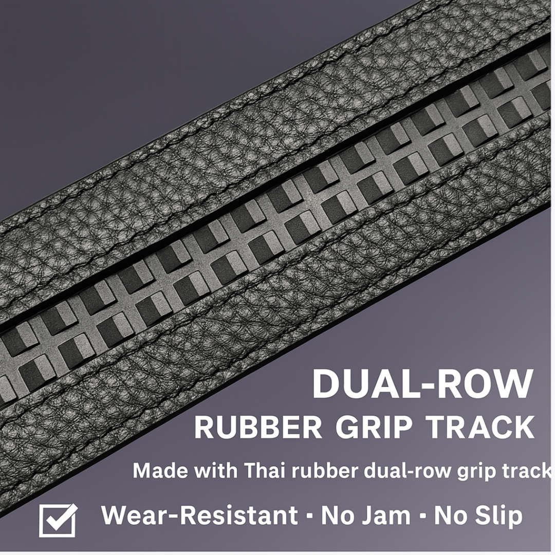 Hidden ratchet-track system provides micro-adjustments in 1⁄4-inch increments, ensuring a seamless fit without visible holes or wear.