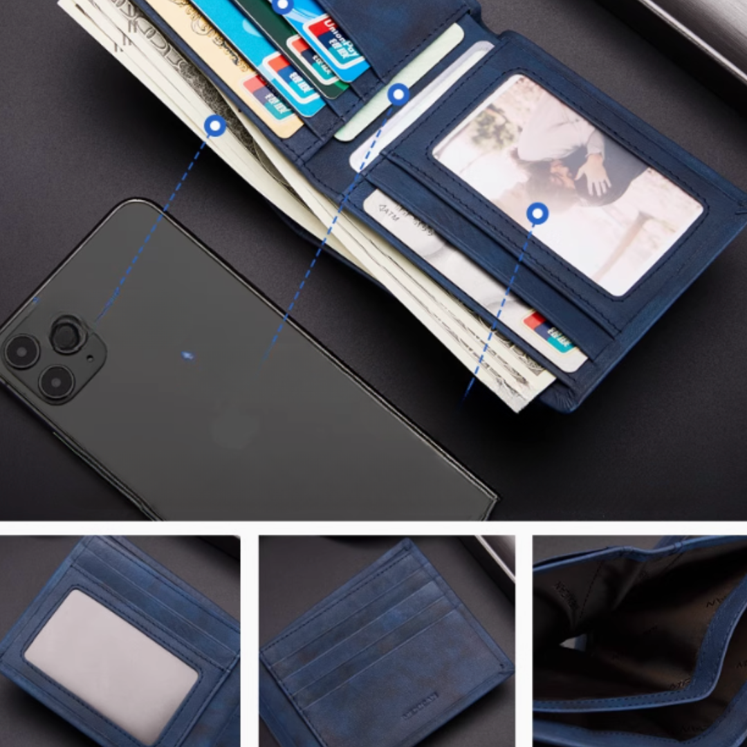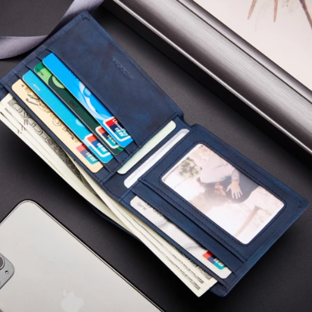 Say goodbye to fumbling at checkout or security checks. Our wallet’s intelligently engineered interior offers 5 dedicated card slots, 2 bill compartments, and 2 ID windows—plus an extra photo sleeve for keepsakes. Whether you’re carrying credit cards, business cards, or essential IDs, everything has its place for quick, seamless access.