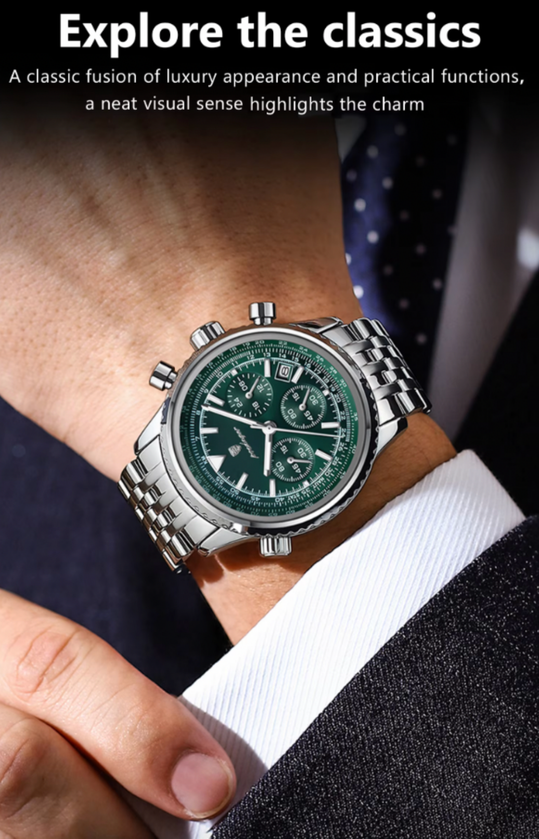 This one caught my eye—shiny, classy, and doesn’t scream “military surplus". It tells time (accurately!), makes me look like I know what a wine list is, and didn’t cost a fortune. My wife thinks I look sharp in it—that’s a win in my book.